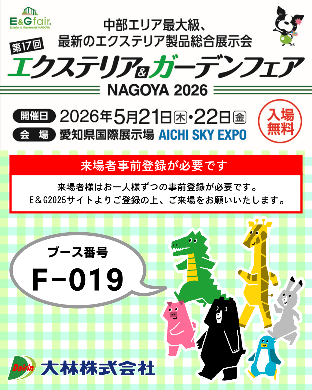 エクステリア&ガーデンフェア(E&G)2026に出展いたします。